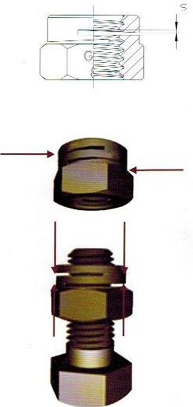開槽鎖緊螺母的鎖緊槽經(jīng)精密加工而成,使內(nèi)螺紋產(chǎn)生一距差。當螺栓旋入時,內(nèi)螺紋回復(fù)原有螺距,發(fā)生彈性產(chǎn)生的彈性力將內(nèi)外螺紋緊密嚙合,使螺母牢固的自鎖螺栓有一種對稱開槽的設(shè)計,可使鎖緊力均衡分布在上,使嚙齒更緊密,適合于震動更劇烈的應(yīng)用.
